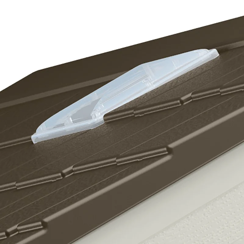La double porte cadenassable est elle aussi très robuste avec ses 38mm d’épaisseur. Les fenêtres apportent de la luminosité à l’intérieur de l’abri, amplifiée par les 8 puits de lumière de toit fournis.