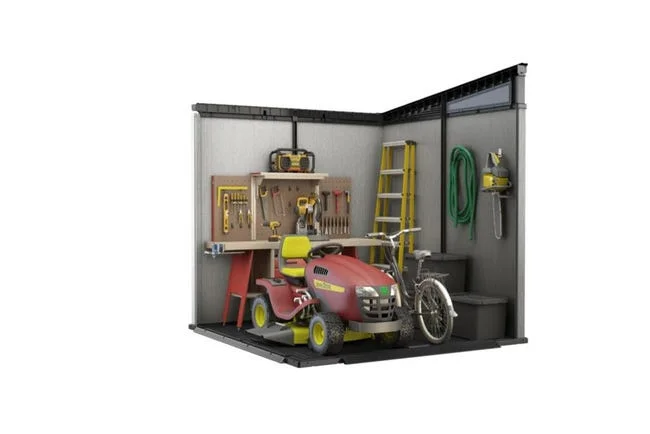 Design contemporain et élégant, cet abri de jardin monopente offre une surface de rangement de 4,7m². Sa structure en polypropylène brossé traitée anti UV offre un effet bois naturel selon la technologie DUOTECH. Cet abri possède un système d’aération et des fenêtres transparentes pour laisser entrer plus de lumière naturelle. Il résiste au froid, à la chaleur et à toutes les intempéries. Il ne nécessite pas d’entretien. La porte verrouillable vous permettra de stocker vos outils, vos vélos, votre mobilier de jardin en toute sécurité. Le plancher inclus protégera vos accessoires de l’humidité et de la boue. Son accueil incliné facilitera le rangement des articles avec roues. Le toit est en imitation tuiles et supporte jusqu’à 150 kg/m2. Selon vos envies, vous pourrez peindre les panneaux pour plus de personnalisation et installer des étagères à l’intérieur grâce à un système de clips de pose inclus. Cet abri de jardin est simple à assembler et est garanti 10 ans. Dimensions produit monté L216 x P218 x H226 cm.
