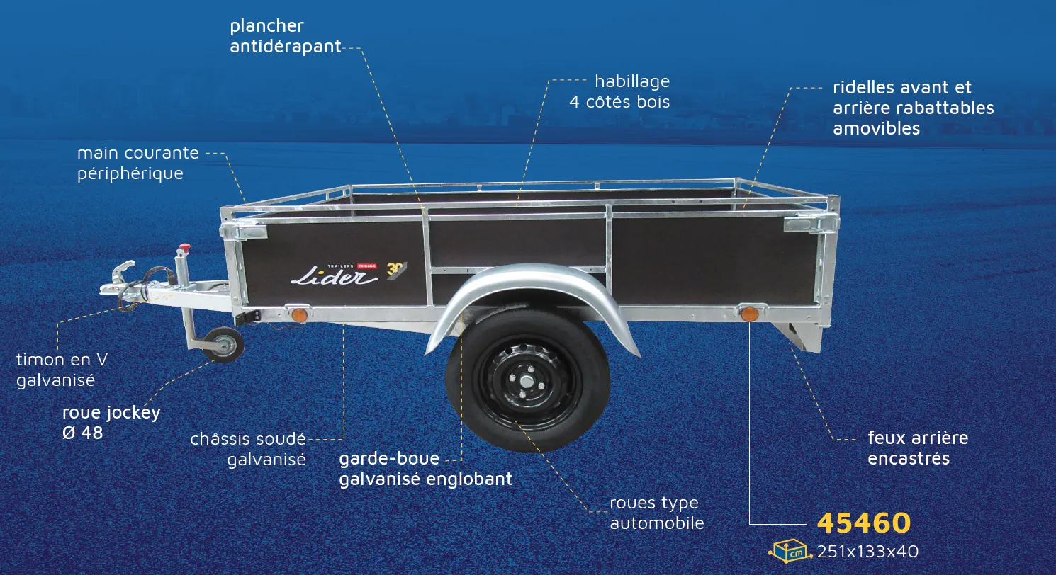 Remorque en bois Lider 45450 à 2 essieux, 251 x 133 x 40 cm, 750 kg