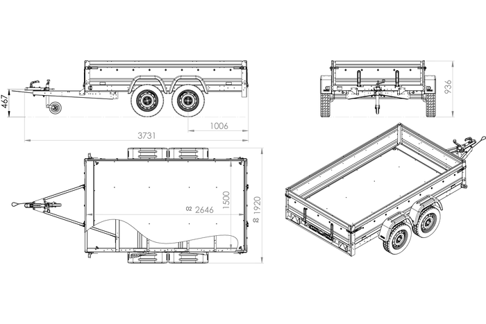 La remorque à deux essieux UNITRAILER EXPERT 2615/2 n’est pas seulement destinée aux professionnels, conçue pour les travaux difficiles et une utilisation quotidienne. PTAC 750 kg, 2 essieux non freinés, dimensions de 2640 x 1500 mm.