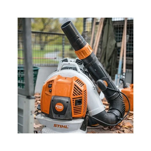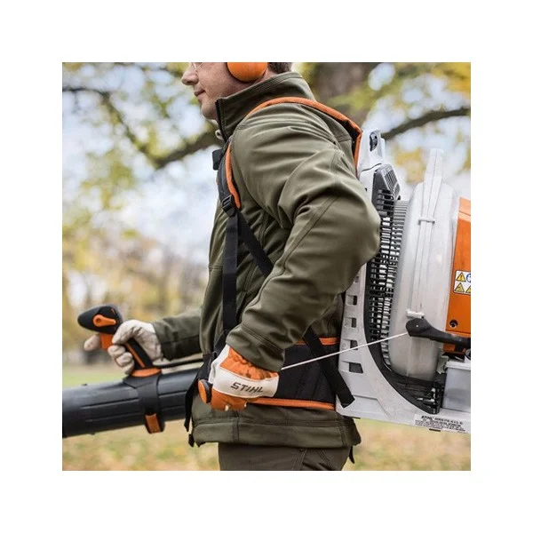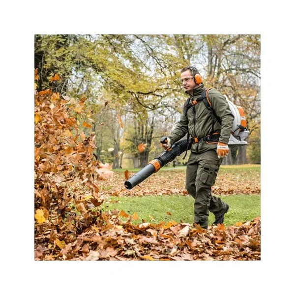 - Le souffleur à dos thermique le plus puissant de STIHL. L’appareil peut être redémarré rapidement après une courte pause de travail grâce à une poignée de lanceur positionner sur le côté du souffleur.